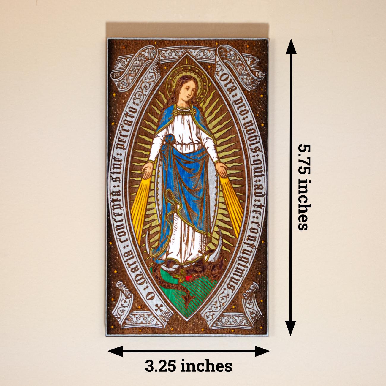 Our Lady of Grace, Hand-Colored, Laser-Engraved, Mini Wood Wall Art, 3.25" x 5.75", Engraved and Hand-Colored in the USA
