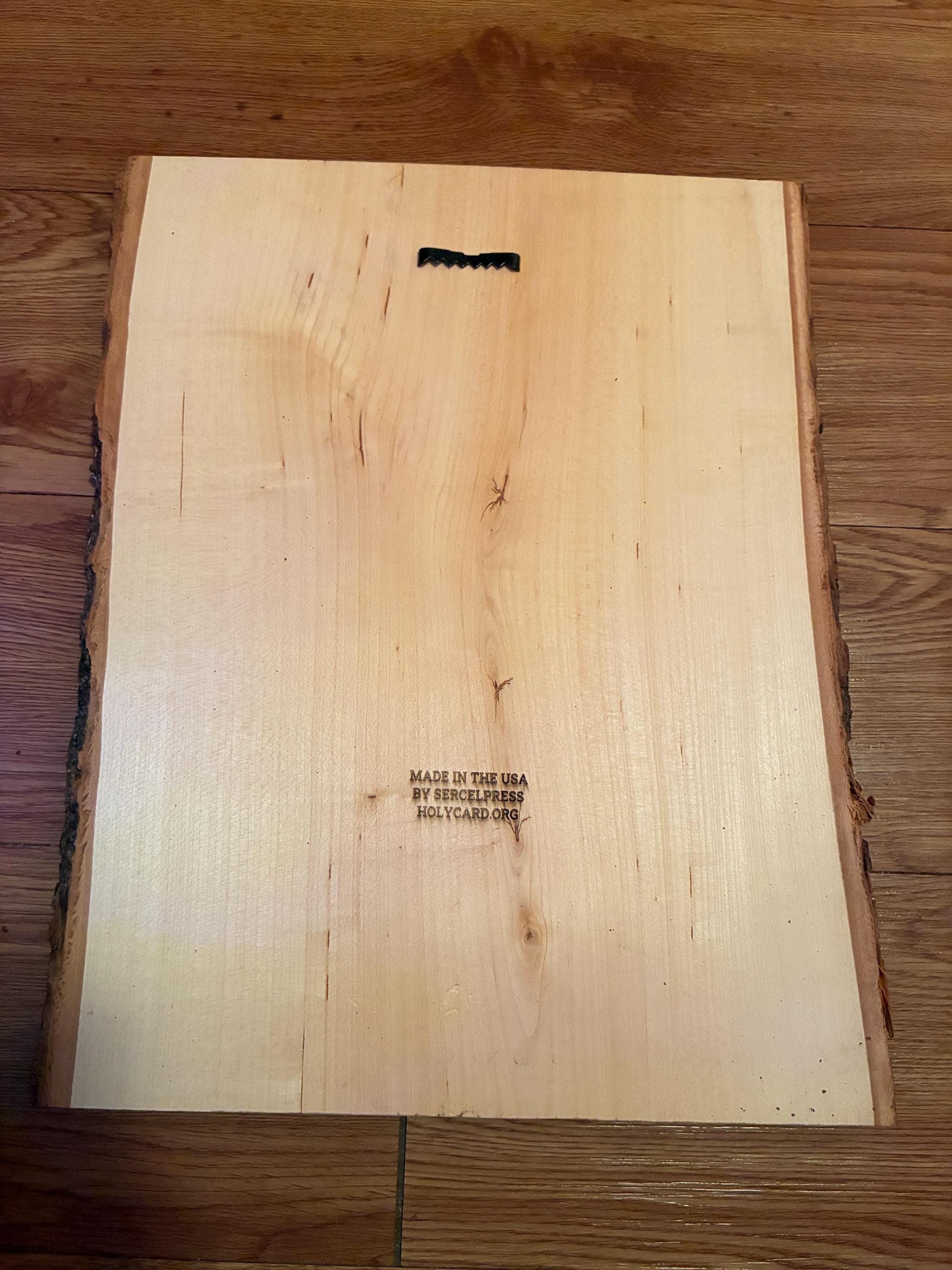 Beautiful, large precision laser-engraved wood wall art, featuring an engraving of a Prayer of Husband & Wife, perfect for spouses to say together! Near the bottom of the art piece is an image of a wedding, and on either side at the bottom are quotes from Ephesians 5:23 and Genesis 2:24 in both English and Latin. Measuring approximately 12" x 16" and approximately 3/4" thick, with sawtooth hanger on the back, this could be a focal point in your home! Ready to put on your wall. Makes a great gift, especially for weddings or anniversaries, or other special occasions, but would also be a beautiful addition to your family's daily Catholic living!
