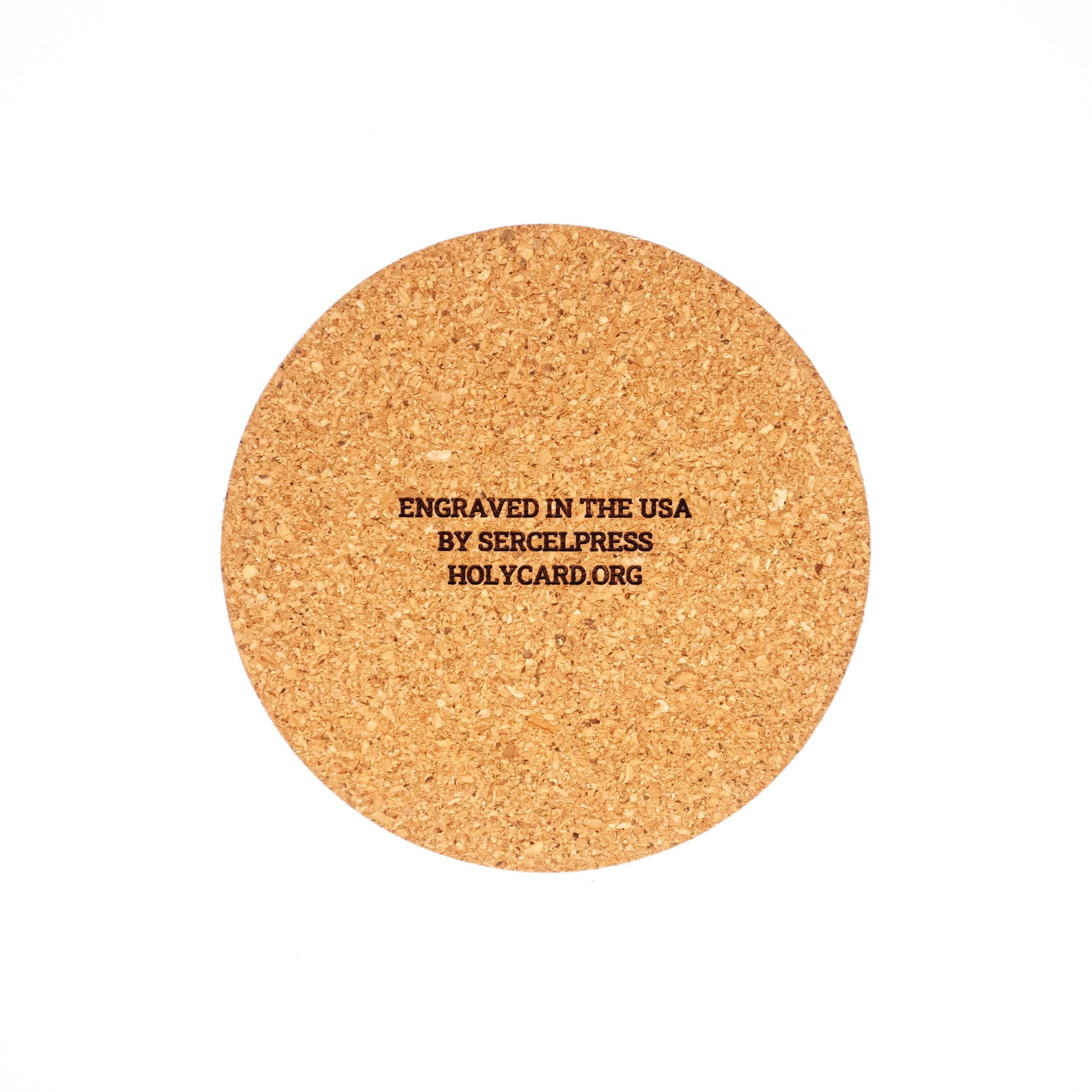 This round cork coaster features a laser-engraved image of the St. Benedict Medal, one of the most recognizable devotional symbols in the Catholic tradition. Simple and natural, it offers a daily, prayerful reminder of peace, focus, and spiritual strength-perfect for use in the home, office, or prayer space. The back of each coaster is marked with ENGRAVED IN THE USA BY SERCELPRESS - HOLYCARD.ORG, a subtle signature of quality and care.