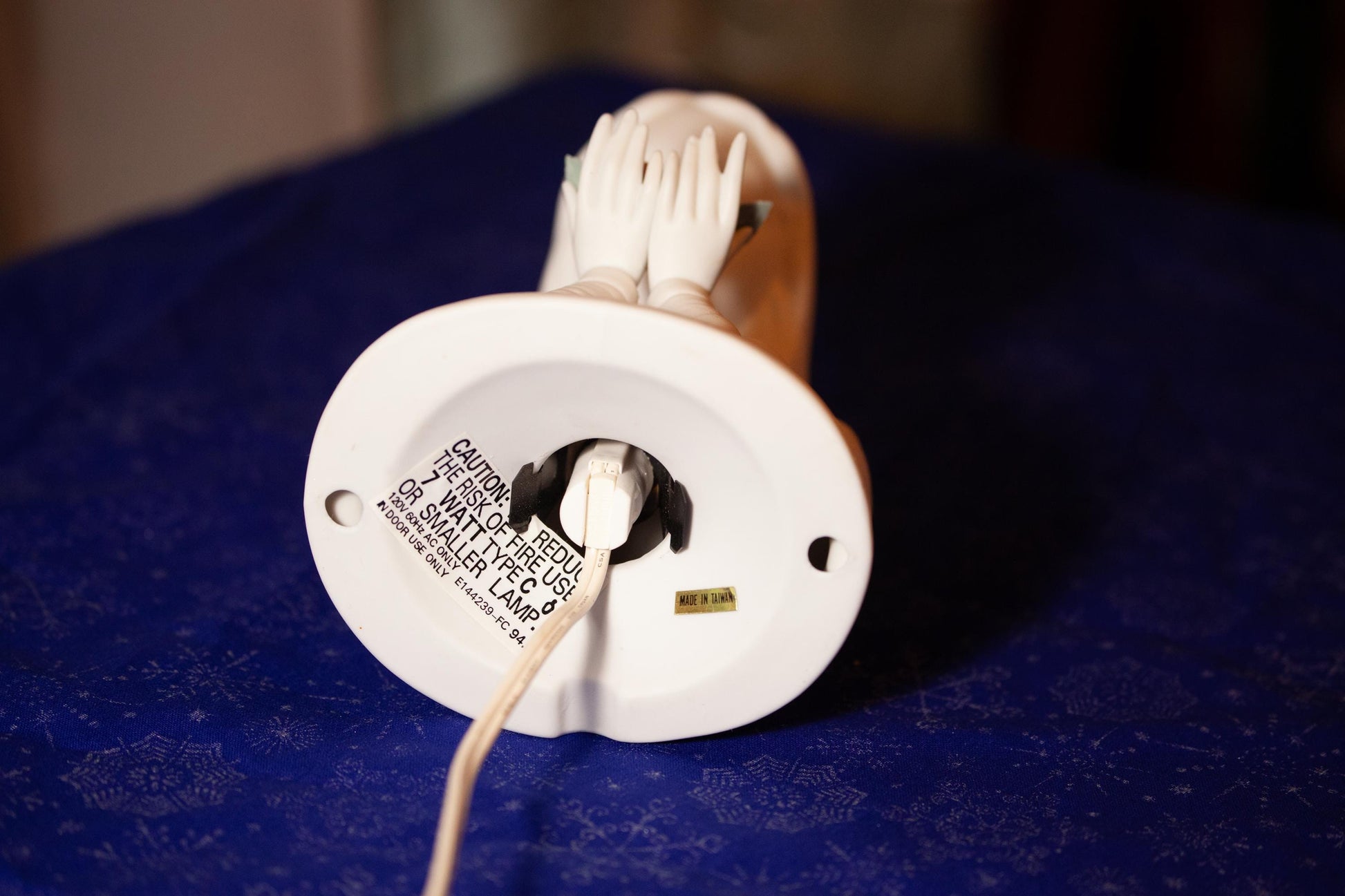 Vintage and gently pre-owned; One of the green leaves on the rose has been broken off; Original incandescent bulb has been replaced with a warm LED bulb. Some scratches, dust, and minor wear; Some spots/marks; Other minor wear; Made in Taiwan; See pictures!